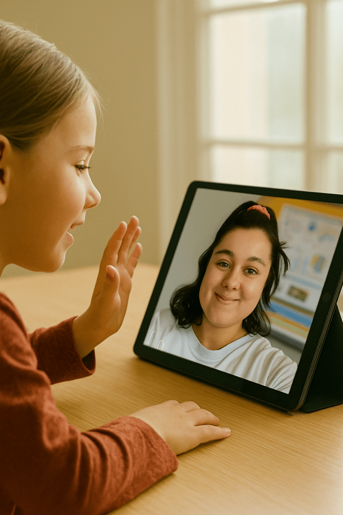 However, it’s also equally important to stay grounded in reality and have time away from the screen. Online lessons with Miss Isabella, “a real person”, bridge the gap on trying to manage screen time. Speaking, interacting, learning social cues, and using body language are extremely beneficial to language learning and development.